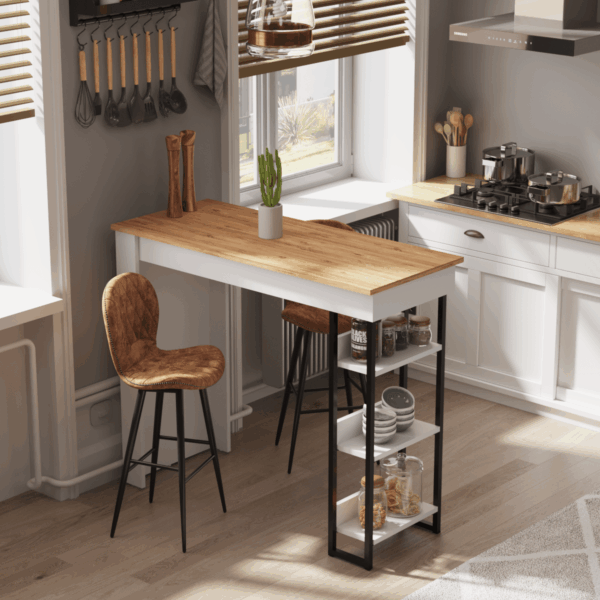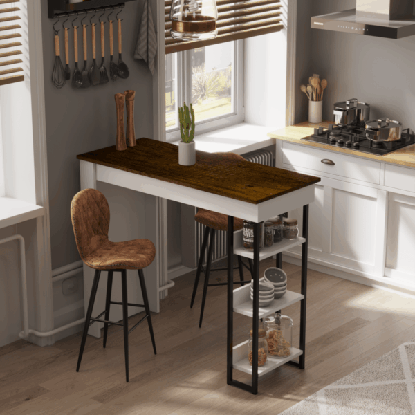 DF01103 Amsterdam Raflı Yüksek Bar Masası Mutfak Yemek Masası