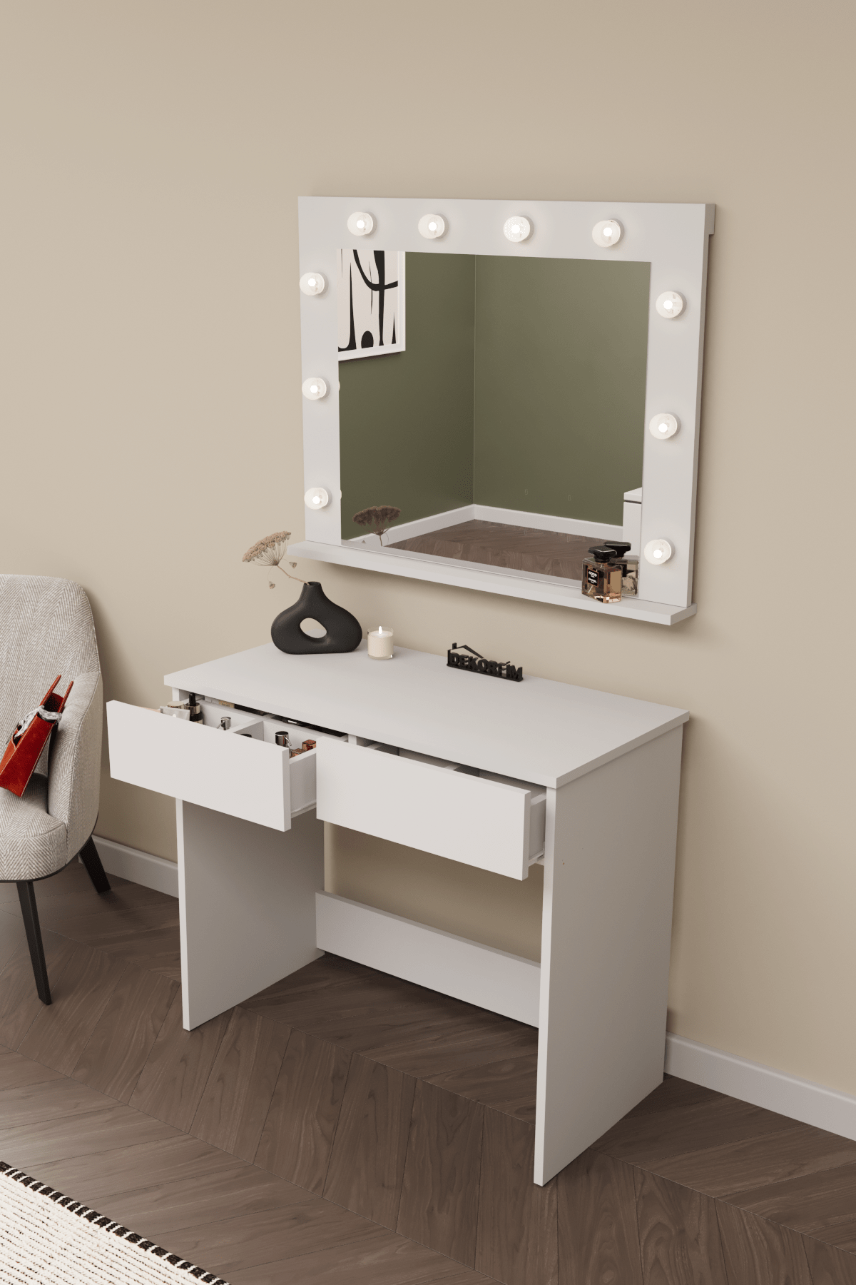 Çekmeceli, Hollywood Işıklı, Kulis Aynalı DF02108B Makyaj Masası