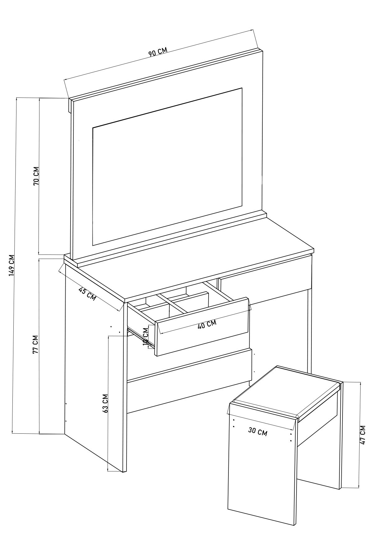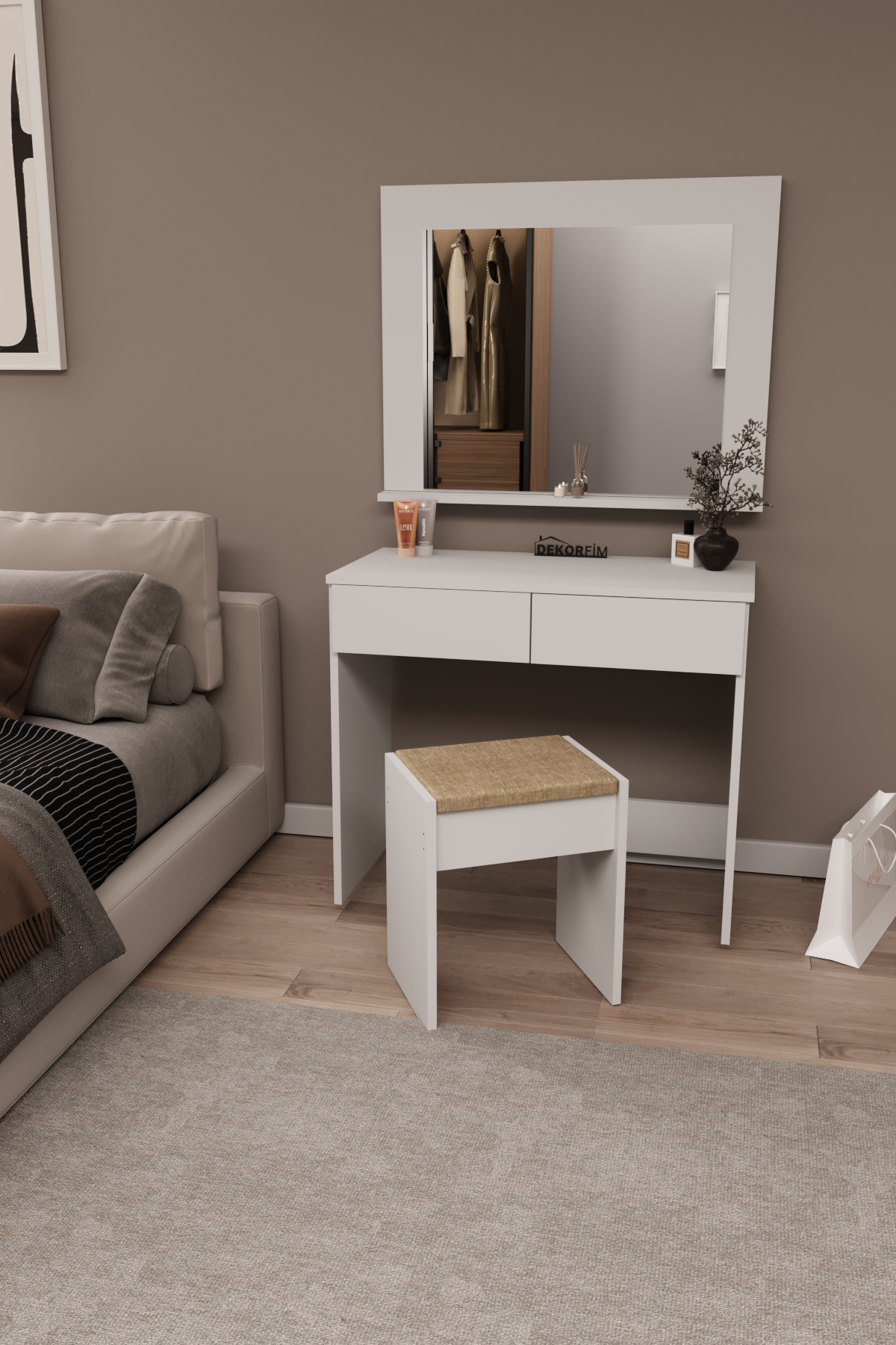 Zarafeti ve işlevselliği bir araya getiren makyaj masası modern yaşam alanları için şık bir çözüm sunar. Geniş yüzeyi, düzenleyici çekmecesi ve sade tasarımıyla hem dekoratif hem de kullanışlı bir mobilya parçasıdır. Minimal çizgileriyle her tarza uyum sağlayan bu masa, makyaj rutininizi konforlu bir deneyime dönüştürür.