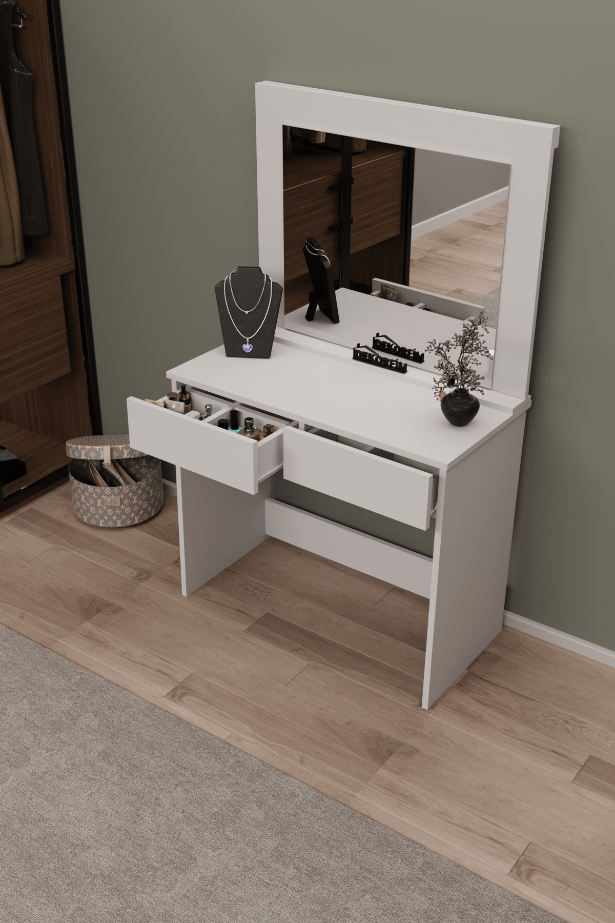 Hem fonksiyonel hem estetik bir çözüm arayanlar için DF02110B, düzenli, ferah ve şık bir makyaj alanı oluşturmanın en pratik yollarından biridir.