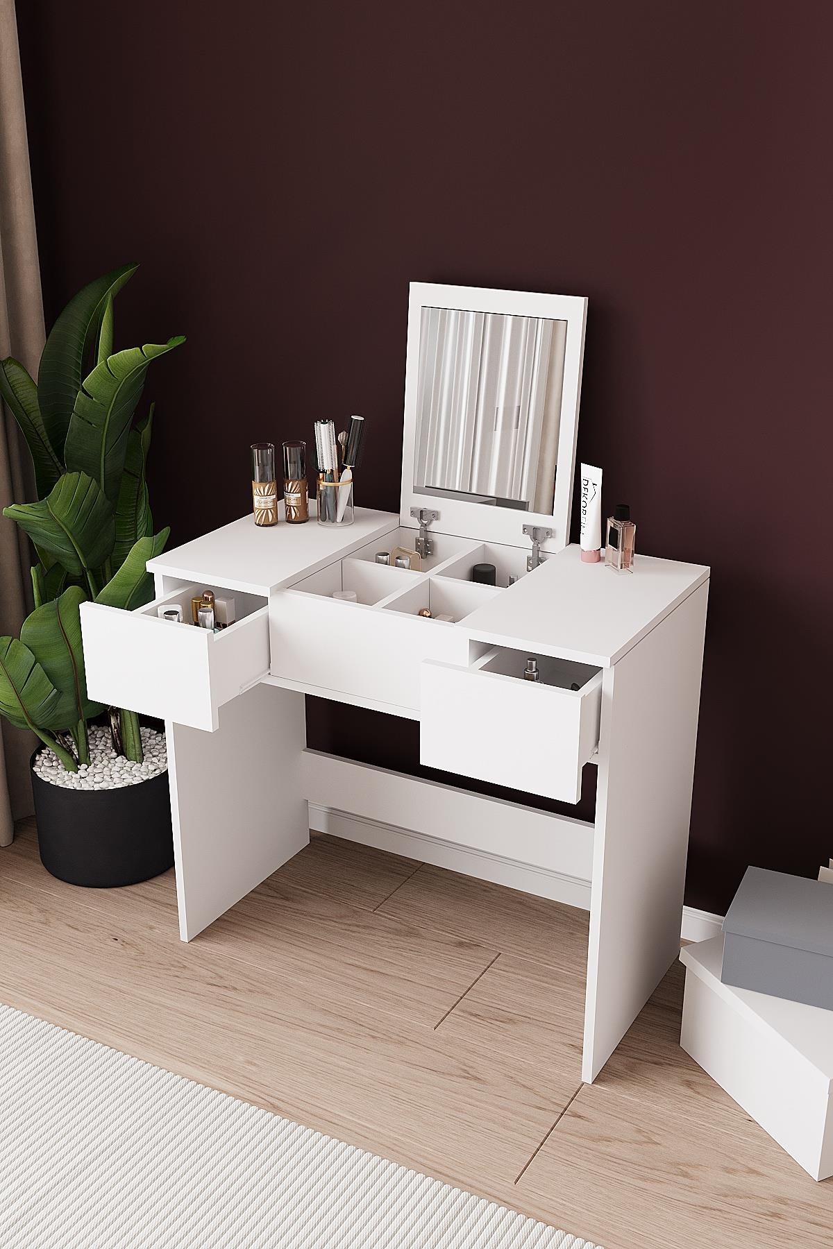 DF02112B Çekmeceli Aynalı Makyaj Masası Beyaz