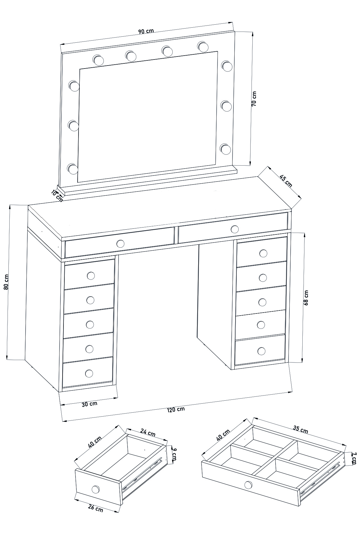 🔹 Makyaj Masası Ölçüleri