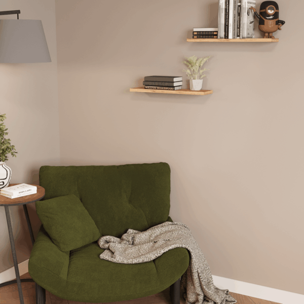 Evinize hem şıklık hem de düzen getiren 3’lü dekoratif duvar rafı, Minimalist tasarımı ve pratik kullanımıyla öne çıkıyor. her biri 50 cm genişliğinde ve 13 cm derinliğinde olan 3 eşit raf, fazla yer kaplamadan dekoratif objelerinizi, kitaplarınızı veya günlük eşyalarınızı sergilemenizi sağlar.