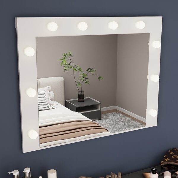 Modern çizgilere sahip DF06101 ışıklı makyaj aynası, sade beyaz rengiyle her mekâna ferahlık katarken güçlü LED aydınlatmasıyla profesyonel bir görünüm sağlar. Geniş yüzey ve alt raf detayı sayesinde hem estetik hem pratik kullanım sunar.