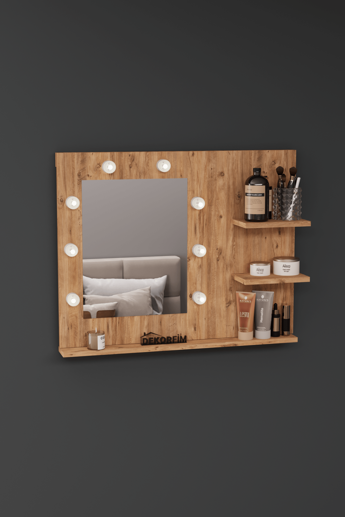 DF06103AC Raflı Dekoratif Kulis Işıklı Duvar Aynası Makyaj Masası Aynası