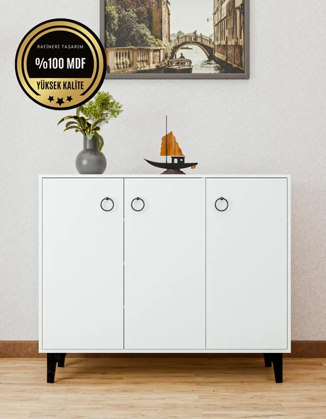 DF08102 Hayal MDF Beyaz Ayakkabılık Antre Hol Çok Amaçlı Dolap Ayakkabı Dolabı