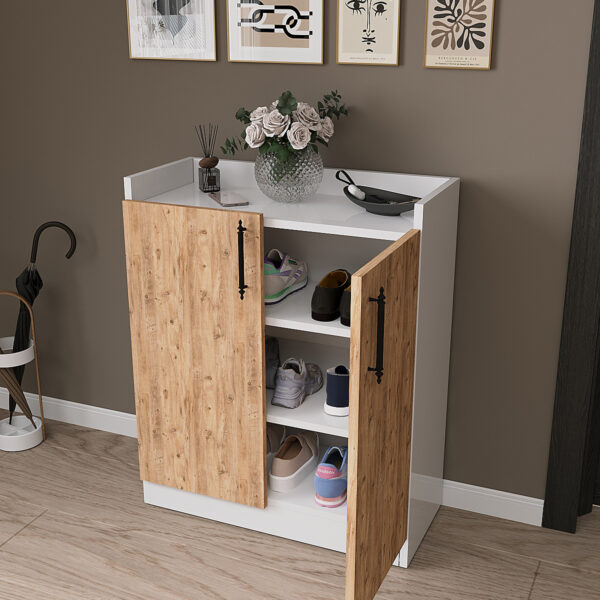 Dolap içerisinde bulunan 1 adet ayarlanabilir raf, farklı yükseklikteki ürünlere göre kolayca konumlandırılabilir. Kavanozlar, bakliyat kapları, saklama kutuları veya küçük ev aletleri için raf yüksekliğini kendinize göre ayarlayabilir, dolabı kullanım alışkanlıklarınıza göre kişiselleştirebilirsiniz.