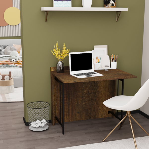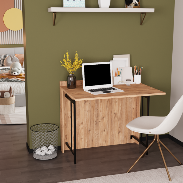 Bu katlanır çalışma masası; hem yerden tasarruf sağlar hem de modern görünümüyle evinizin havasını değiştirir. Çalışma, ders ya da hobileriniz için ideal bir alan yaratır; işiniz bittiğinde ise kolayca katlanarak alandan tasarruf etmenizi sağlar.