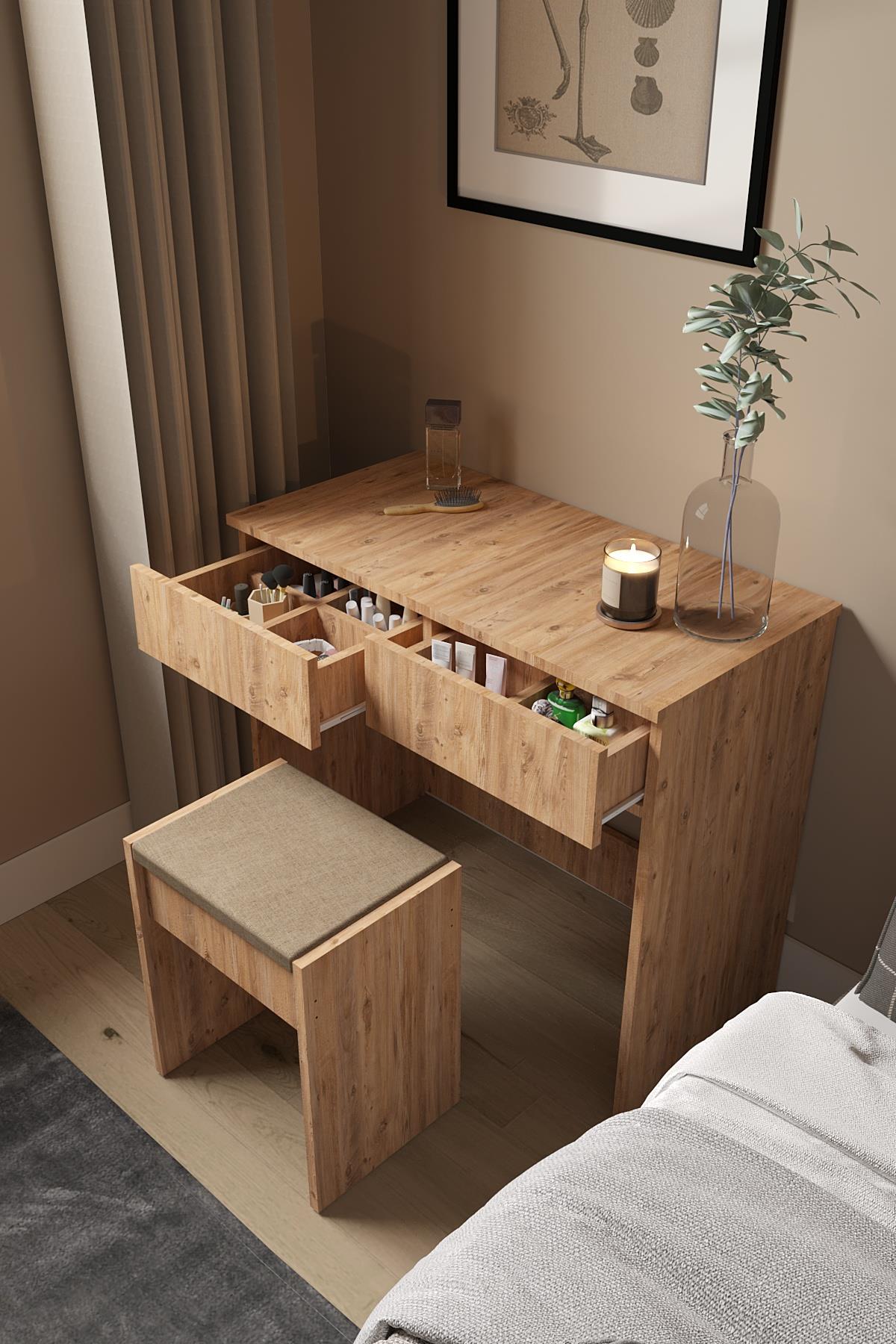 02-102AC Çekmeceli Tabureli Makyaj Masası I Dekorfim Mobilya