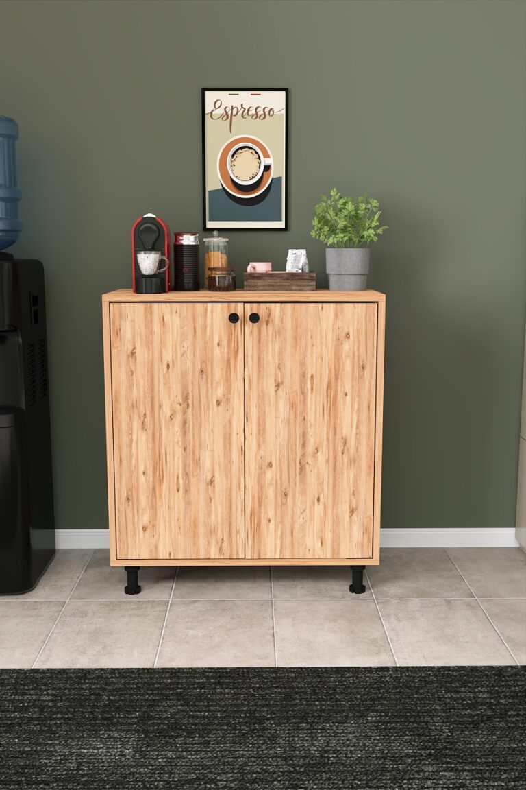 DF13101AC Lotus 2 Kapaklı Çok Amaçlı Mutfak Dolabı Kiler Kahve Köşesi Raflı Modern Depolama Dolabı