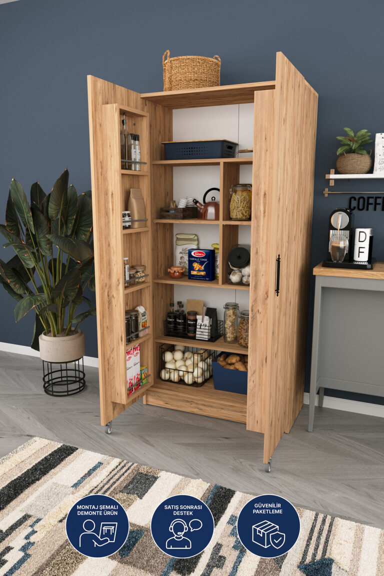 DF15105AC Tekerlekli Kiler Dolabı – Kapak İçi Raflı, Geniş Depolama Alanlı Yüksek Raflı Mutfak Dolabı