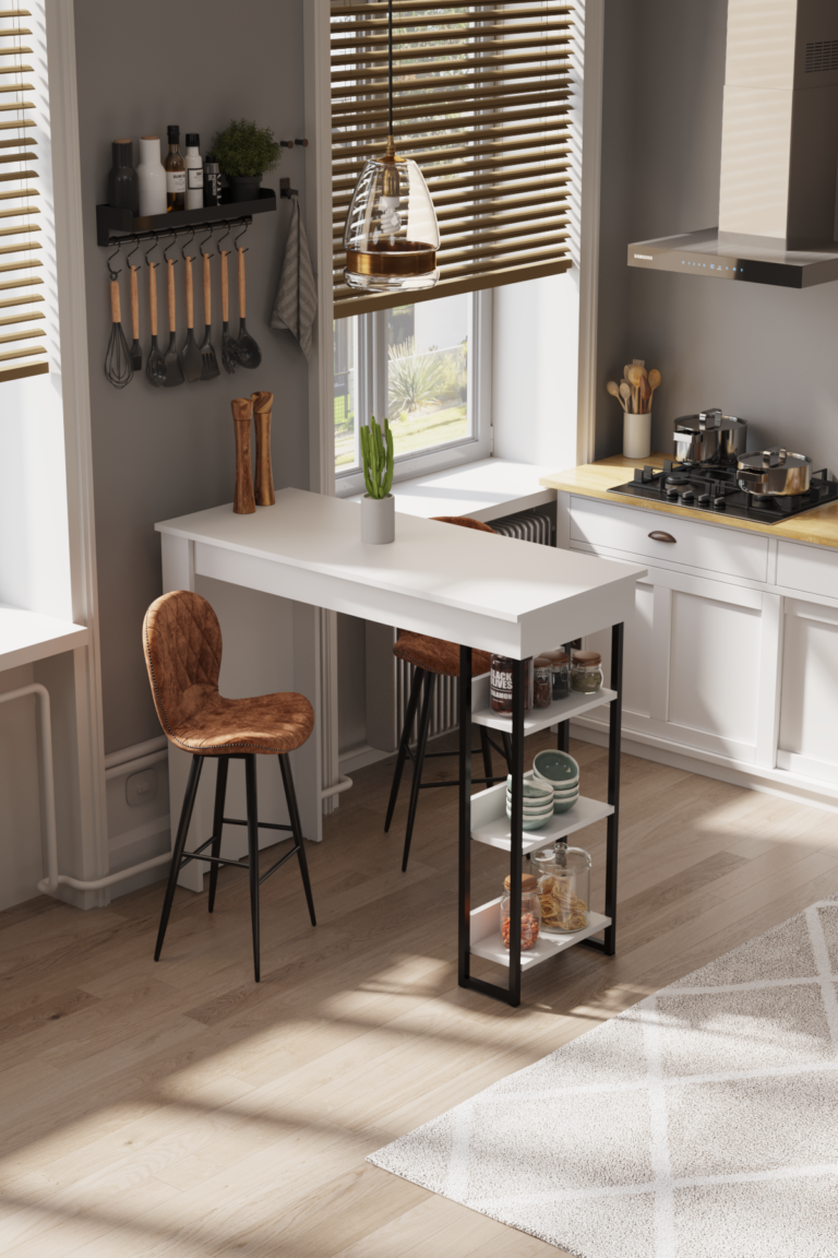 DF01103B Amsterdam Raflı Yüksek Bar Masası Mutfak Yemek Masası