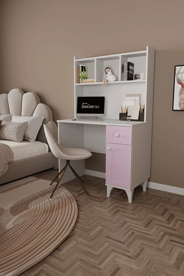 DF09105 Çekmeceli Membran Kapaklı, Kitaplıklı Çalışma Masası, Bilgisayar Masası